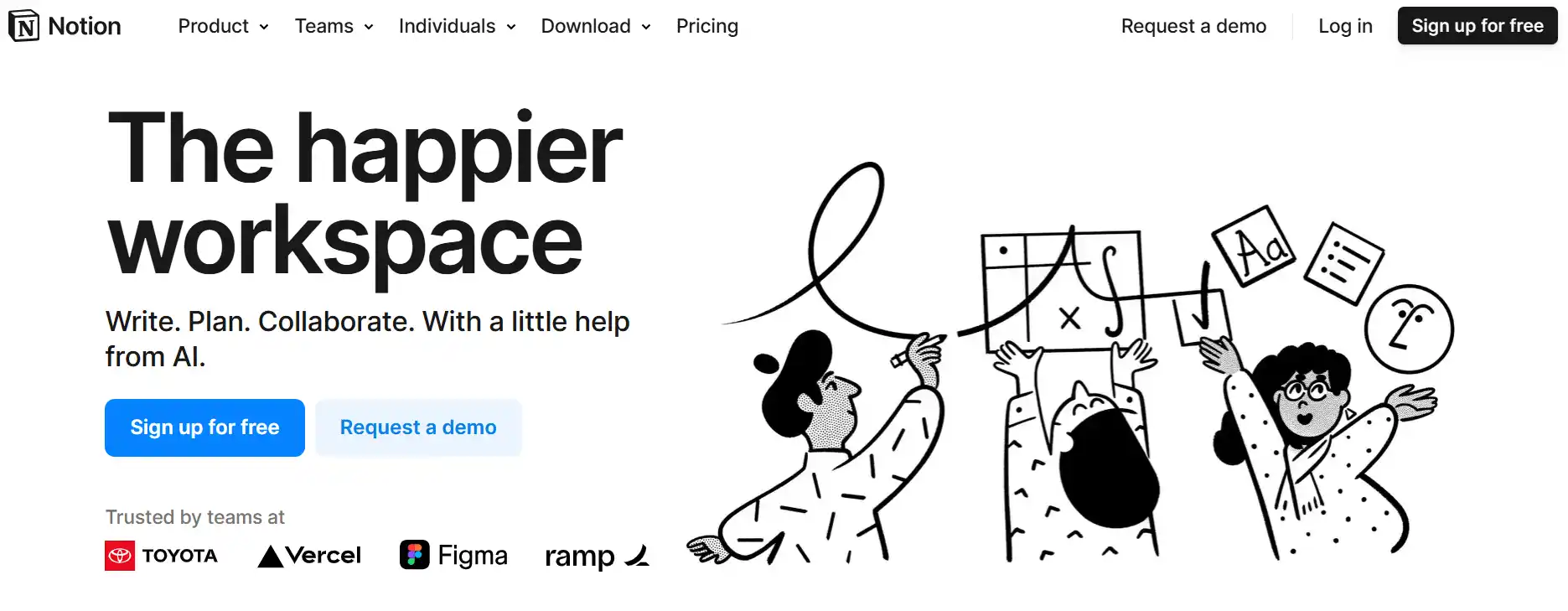 • Notion AI add-on: $8/user/month (billed annually), $10/user/month (billed monthly)